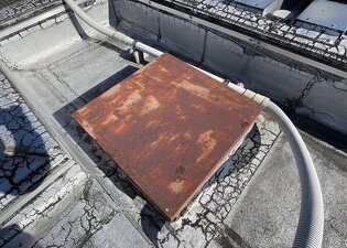 今回の工事は 屋上防水→通気緩衝工法 点検口交換 軒天補修調色柄付け塗装 という内容となっております。 -